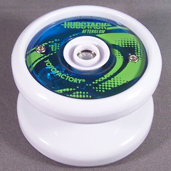 The Hubstack was designed to be an affordable yo-yo featuring YoYoFactory's Hubstack technology. The AfterGlow edition features Glow-in-the-dark white plastic with internal blue LED lights that activate when spinning.