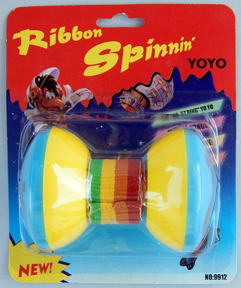 Essentially identical to the Duncan - Yoffy (1983) ribbon yo-yo and the Imperial Toy Corporation - E-Z Go Ribbon Yo-Yo (1987) except that this version uses the term "YOYO" on its packaging.